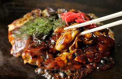 新鮮な牡蠣がたっぷり入ったお好み焼きで、濃厚な旨みとキャベツの甘みが絶妙。冬のごちそうとして、味もボリュームも満点!