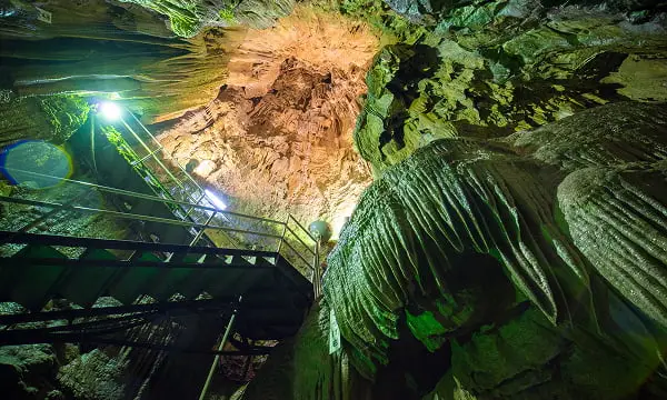 井倉洞は、岡山県新見市にある全長1,200mの巨大鍾乳洞で、幻想的な奇岩や滝が地底の絶景を探検気分で盛り上げる人気スポットです